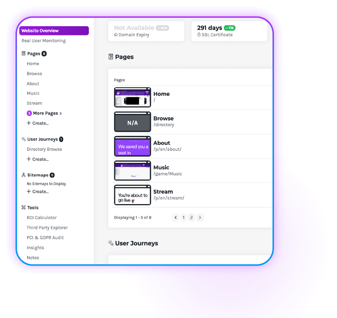 Enterprise checkout and user journey monitoring.