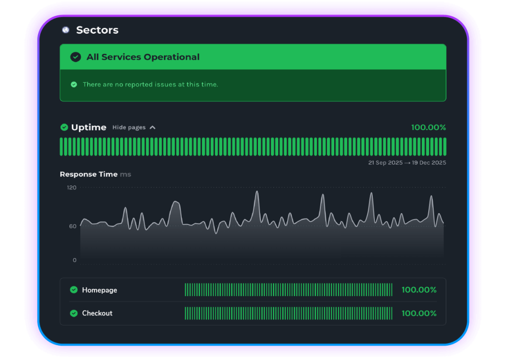 Clear, executive-ready branded reporting and status pages.